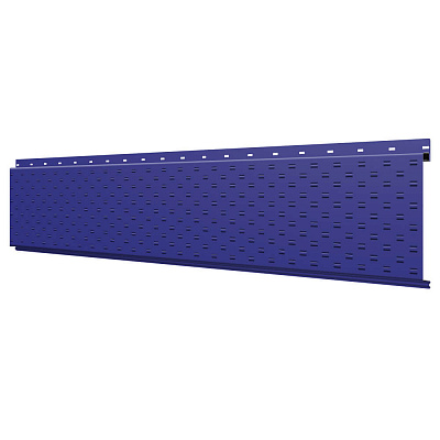 Линеарная потолочно-стеновая панель с ПЕРФОРАЦИЕЙ для вентиляции цвет RAL5002 Синий Ультрамарин применяется в качестве софитов для подшивы крыши, наружной и внутренней отделки потолков, стен, фронтонов фасада дома в Костанае.