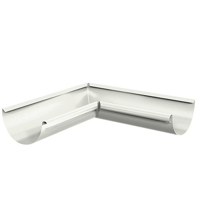 Угол желоба водостока внутренний 90 градусов d125мм RAL 9010 Белый металлический - используется для надежного сопряжения двух желобов между собой на внутренних углах 90 градусов карниза кровли. Угол желоба изготовлен без сварных сопряжений, методом прессования (глубокая вытяжка), что придает ему дополнительную коррозийную и механическую стойкость.