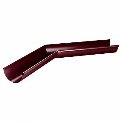 Угол желоба водостока внутренний 135 градусов d125мм RAL P363 Вишня металлический - используется для надежного сопряжения двух желобов между собой на внутренних нестандартных углах 135 градусов карниза кровли. Угол желоба изготовлен без сварных сопряжений, методом прессования (глубокая вытяжка), что придает ему дополнительную коррозийную и механическую стойкость.