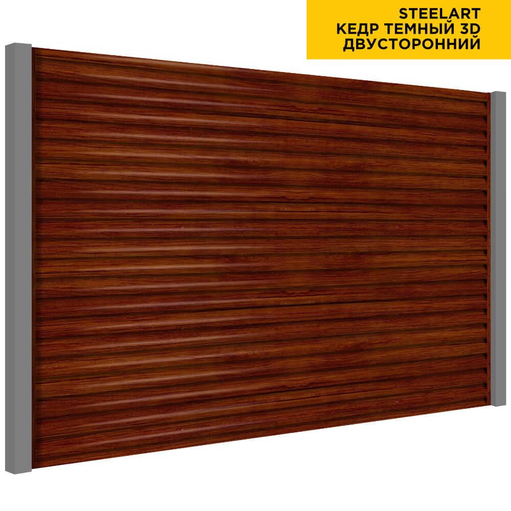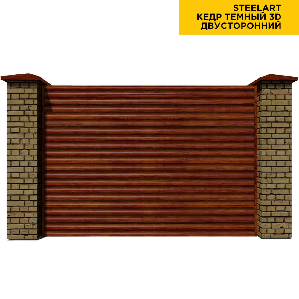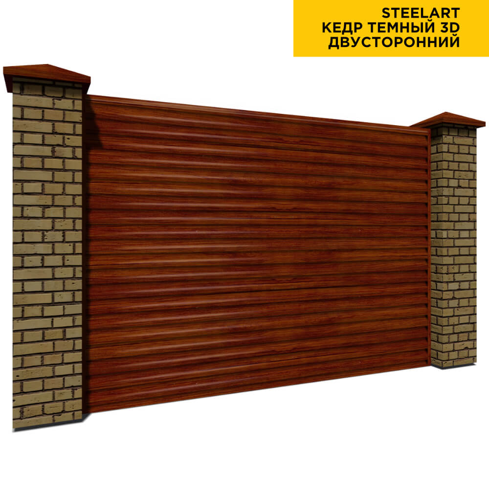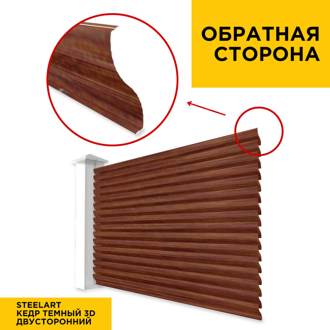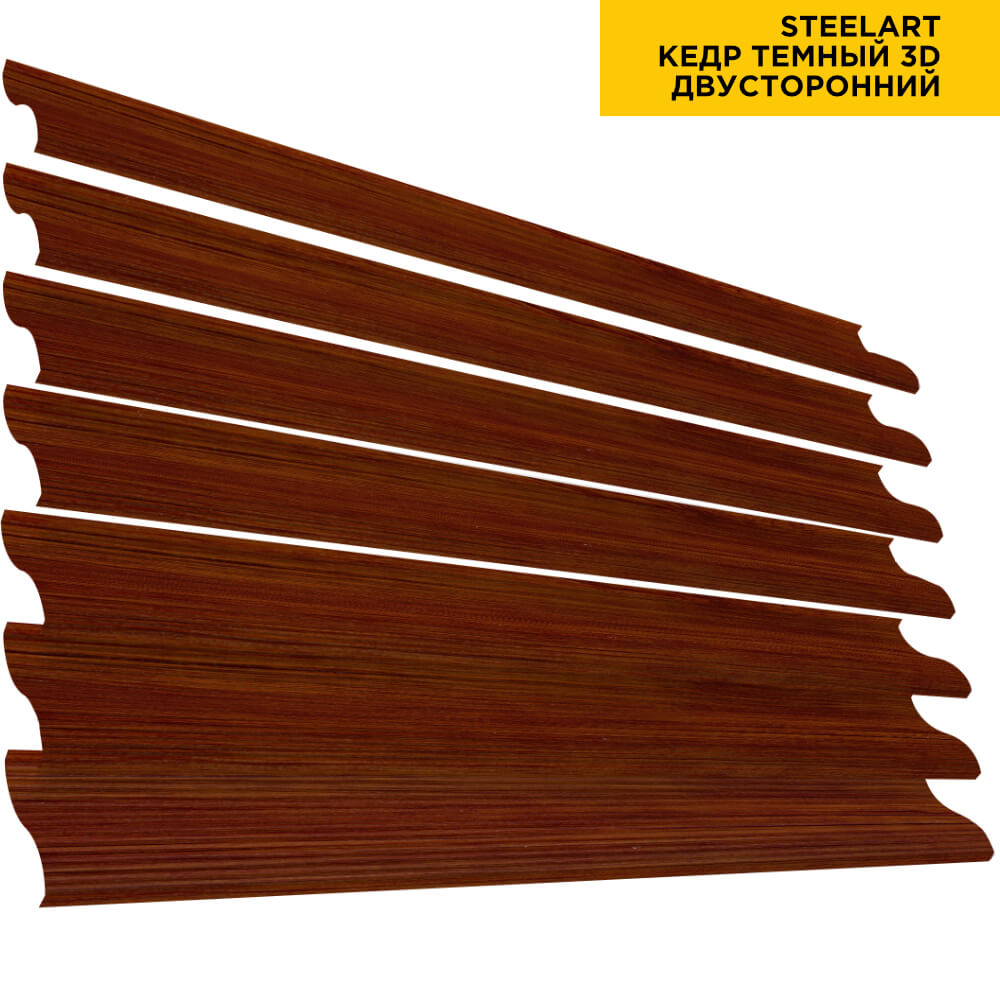 Ламель Еврожалюзи металлическая S-образная, цвет под дерево Кедр Темный 3D SteelArt Россия двухстороннее покрытие, длина любая кратно 1см под заказ - для забора-жалюзи, беседки, перголы в Костанае