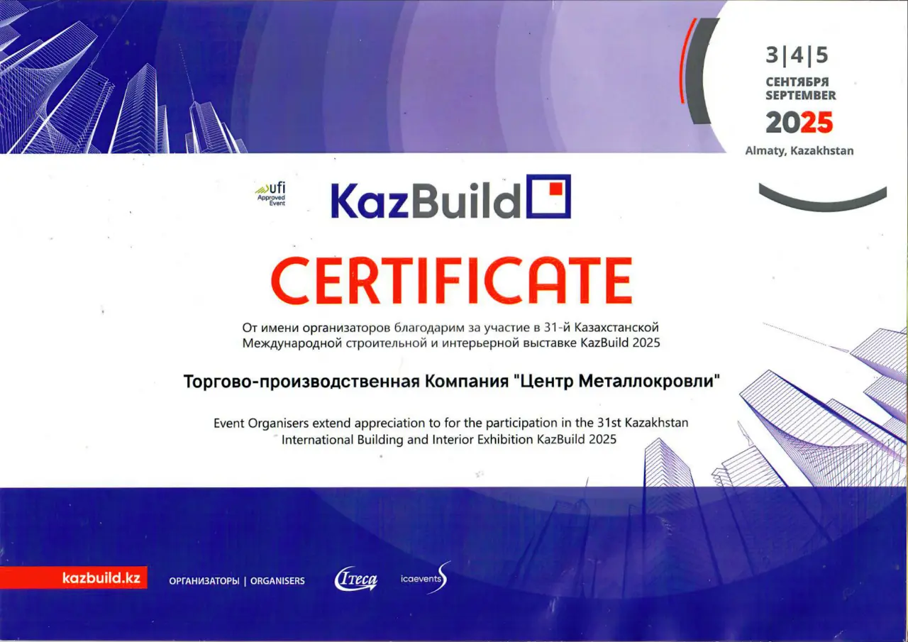 Сертификаты официального дистрибьютора подтверждают право ТПК «Центр Металлокровли» на продажу и обслуживание продукции ведущих российских и мировых брендов в Костанае по выгодным ценам. Мы работаем напрямую с производителями, что гарантирует подлинность товаров, актуальность ассортимента и соблюдение всех требований по качеству и гарантии.
