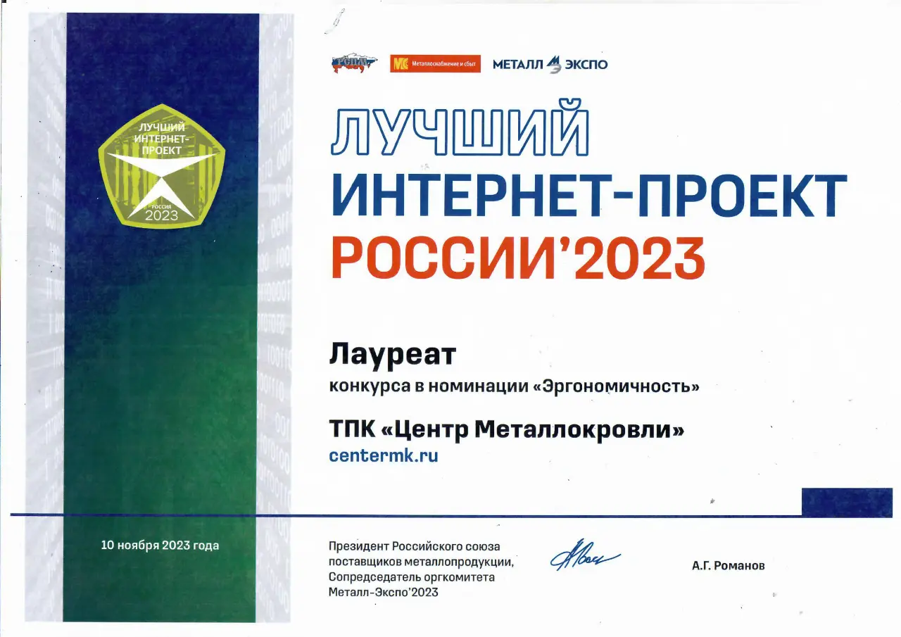 Диплом лауреата конкурса "Лучший интернет-проект России 2023" в номинации "Эргономичность"