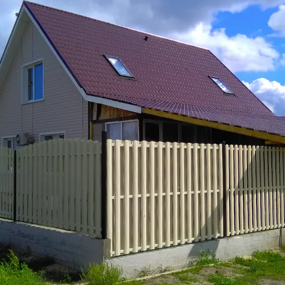 Элегантный и надёжный забор из металлического штакетника цвет RAL 1015 Слоновая Кость станет изюминкой вашего участка. Мягкий оттенок и аккуратные полукруглые планки создают ощущение уюта и гармонии, подчёркивая стиль дома и ухоженность территории. Использование одностороннего штакетника с прокатом сторона А/Б отличный способ сделать забор, красивый с обеих сторон — идеальное сочетание эстетики и практичности. Такой забор не просто защита, а настоящее украшение вашего пространства!