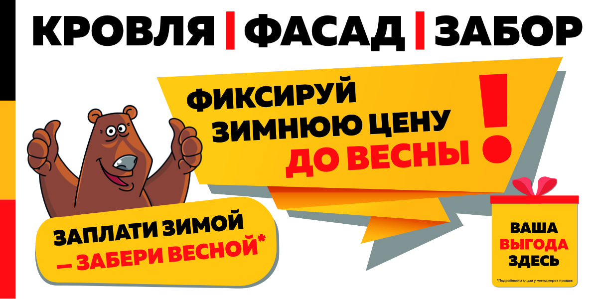 Уже по традиции, зимний сезон в Центре Металлокровли начинается с ежегодной акции: «Заплати зимой — забери весной или летом». Предлагаем купить кровельные и фасадные материалы, заборы по низкой зимней цене с бесплатным хранением до начала строительного сезона весной или летом!